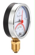 压力温度表的结构设计也十分精巧。其表盘通常为直径 70-150mm 的集成化表盘,可同步显示温度与压力刻度,部分型号还支持℃/℉与 MPa/PSI 等单位切换。表壳材质有多种选择,如 ABS 塑料壳、喷黑色铁壳、不锈钢材质等,接液材质则有铜测温杆、不锈钢等,以满足不同的测量需求和使用环境。此外,压力温度表的接口尺寸也较为多样,常见的有铜螺纹式接头 1/4、1/2,PT、NPT 等,还可根据客户要求进行非标定做。